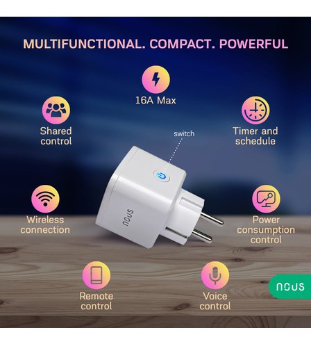 Išmanioji rozetė Wi-Fi MATTER, 230Vac 16A, su energijos matavimu, TUYA / Smart Life, Google Home, Apple Home