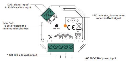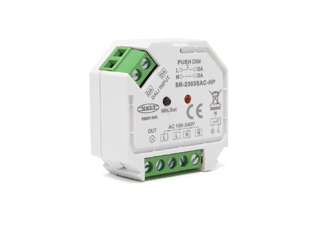 Home » Parduotuvė » Apšvietimo DALI valdymo sistemos valdiklis TRIAC + PUSH-DIM 230Vac, 200W