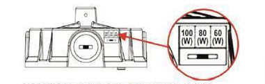 Turi galimybę keisti šviesos galios srautą: 100W, 80W, 60W.
