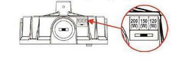 Turi galimybę keisti šviesos galios srautą: 200W, 150W, 120W.