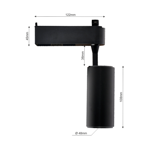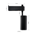 Akcentinio apšvietimo LED šviestuvas. Montuojamas į bėgelį. Pastovios galios maitinimo šaltinis. Korpusas: aliuminis dažytas juodai. Atsparumas aplinkos veiksniams IP20. Komplektuojamas su 4000K LED.