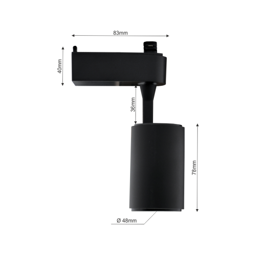 Akcentinio apšvietimo LED šviestuvas. Montuojamas į bėgelį. Pastovios galios maitinimo šaltinis. Korpusas: aliuminis dažytas juodai. Atsparumas aplinkos veiksniams IP20. Komplektuojamas su 4000K LED.