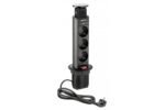 Ištraukiami per stalą montuojami maitinimo lizdai yra vieni populiariausių sprendimų rinkoje. Jie tinka ankštoms erdvėms – mažiems stalams, stalams ar virtuvės stalviršiams. Ištrauktas šis maitinimo lizdas turi tris maitinimo lizdus ir du USB prievadus mobiliesiems įrenginiams įkrauti. Apdaila stilingu dangteliu. Galima įsigyti dviejų universalių spalvų: juodos ir sidabrinės.