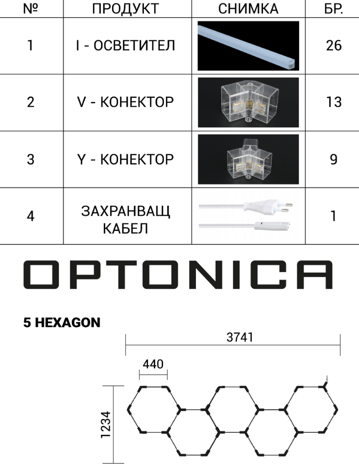Home » Parduotuvė » Lubinis LED korys HEXAGON 5HEX 203W 6000K