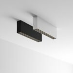 Stačiakampių lubinių projektorių šeima iš dažyto lieto aliuminio, su juodais polikarbonatiniais reflektoriais, įleidžiamais šviesos šaltiniais su SMD LED technologija nuo 2 iki 10 lempučių su akinimo kontrole (UGR < 16).