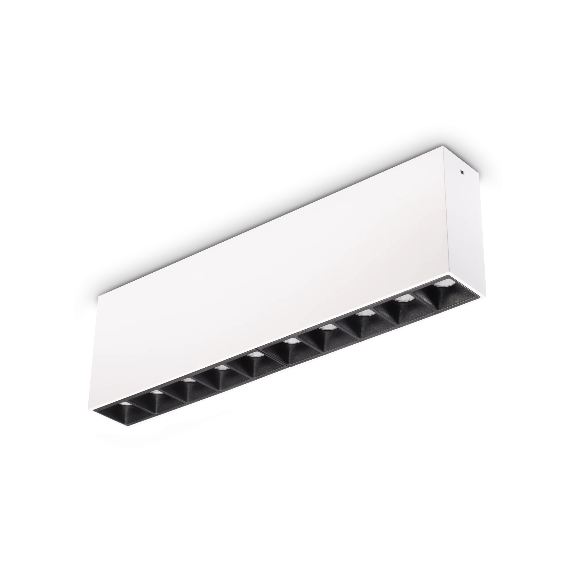Stačiakampių lubinių projektorių šeima iš dažyto lieto aliuminio, su juodais polikarbonatiniais reflektoriais, įleidžiamais šviesos šaltiniais su SMD LED technologija nuo 2 iki 10 lempučių su akinimo kontrole (UGR < 16).
