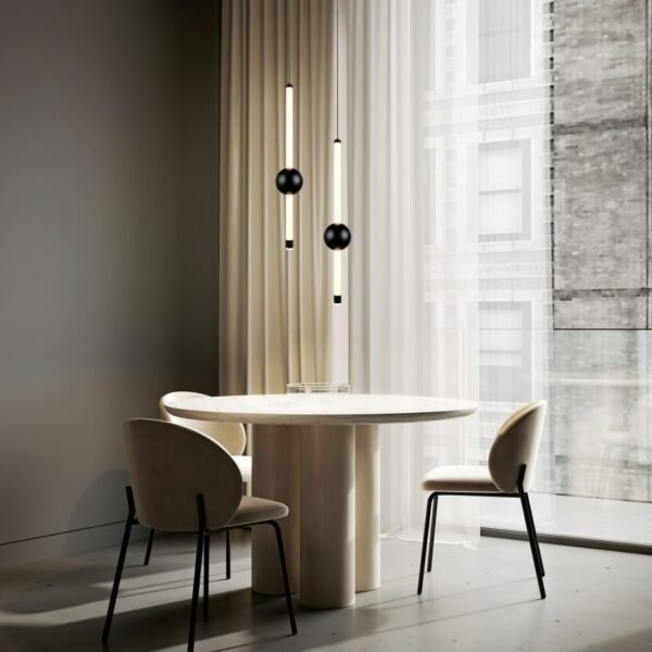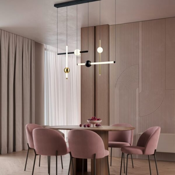 Modernus pakabinamas šviestuvas su keičiamu šviesos spalvos spektru.
