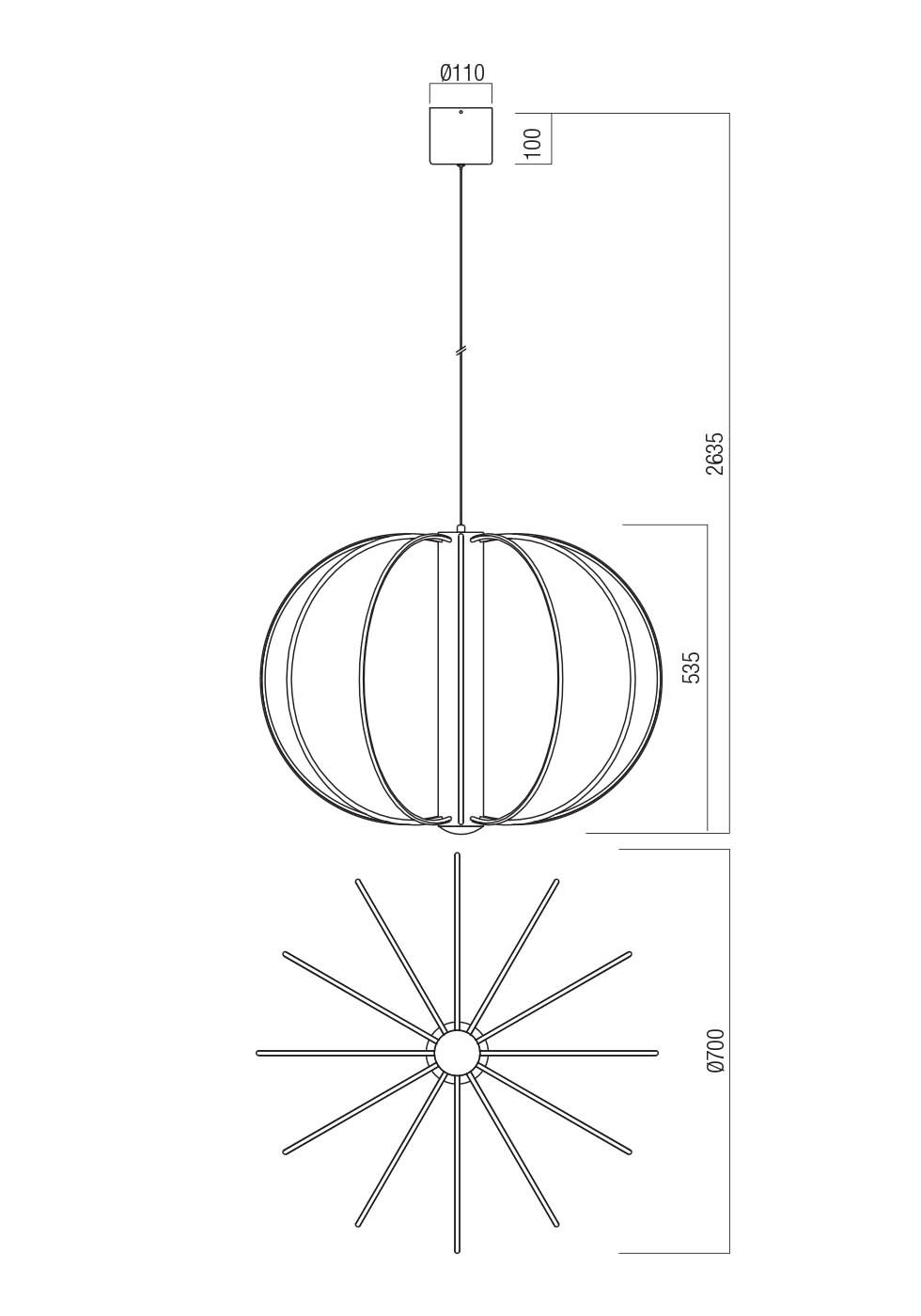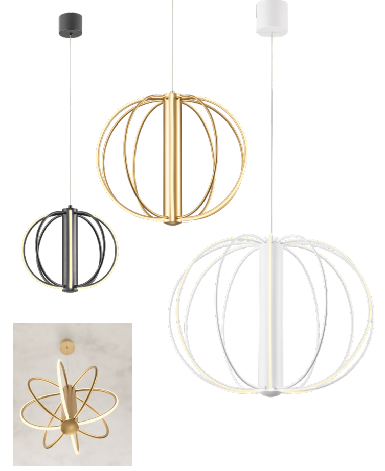 Modernus pakabinamas šviestuvas. Galima rinktis iš dviejų spalvų – juodos arba auksinės. Šviestuvas turi TRIAC dimeriavimo funkciją.