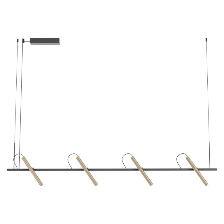 Originalus LED pakabinamas šviestuvas iš „Praxi“ serijos, pagamintas iš matinės juodos spalvos metalinio pagrindo su laikikliu ir keturiomis reguliuojamomis cilindrinėmis aliuminio galvutėmis su skaidriais polikarbonato difuzoriais bei įmontuotu 28,5 W 3000 K LED. Korpusas turi reguliuojamo ryškumo TRIAC maitinimo šaltinį. Stilingas pasiūlymas moderniam jūsų svetainės, valgomojo, viešbučio, biuro ir restorano apšvietimui.