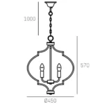 Išmatavimai: D 45 x H 57 cm (grandinės ilgis 100 cm)