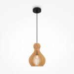 Modernus pakabinamas šviestuvas su medžio detalėmis.
