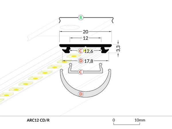 Aliuminis LED profilis ARC12 CD/U5 yra lankstus ir plonas, tinkamas įvairiems apšvietimo sprendimams, arkoms, tad galima sukurti išskirtinius efektus. Skirtas paviršiniam montavimui.