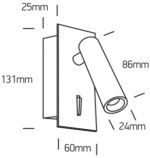 3 W COB LED įleidžiamas reguliuojamas šviestuvas prie lovos, idealiai tinka montuoti viešbučio kambariuose, IP20.