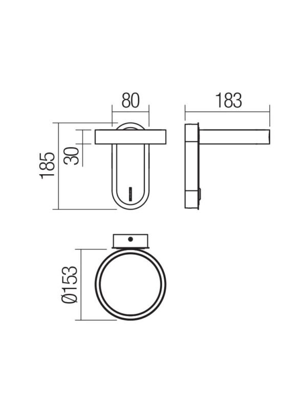 Plotis – 15,3, Aukštis – 18,5, Atstumas nuo plokštumos – 18,3 cm