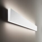 Linijinis aliuminio sieninis šviestuvas su tiesioginiu ir netiesioginiu apšvietimu. Galima rinktis baltos arba juodos spalvos.