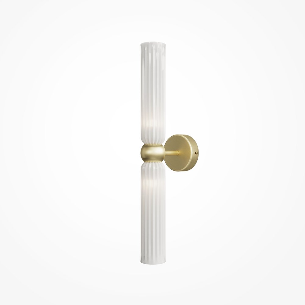 Metalinis aukso spalvos korpusas, dekoruotas, dvejais balto atspalvio, stiklo gaubtais.