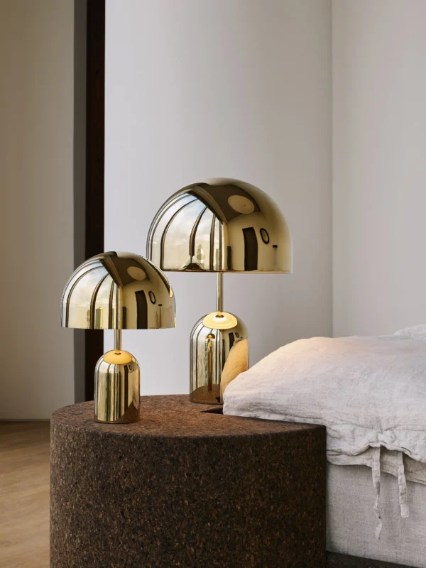 Nešiojamasis šviestuvas BELL yra minimalistinis, blizgus nešiojamas šviestuvas, įkvėptas senovinių automobilių bamperių. Pagamintas iš dengto presuoto plieno, jis atspindi aplinką, o paslėptas difuzorius skleidžia švelnią šviesą. Šis nešiojamas šviestuvas pasižymi 9 valandų baterijos veikimo laiku, universalumu, tinka naudoti tiek patalpose, tiek lauke, energiją taupančiu LED apšvietimu ir parduodamas su pirštinėmis, kad nepaliktų pirštų atspaudų.