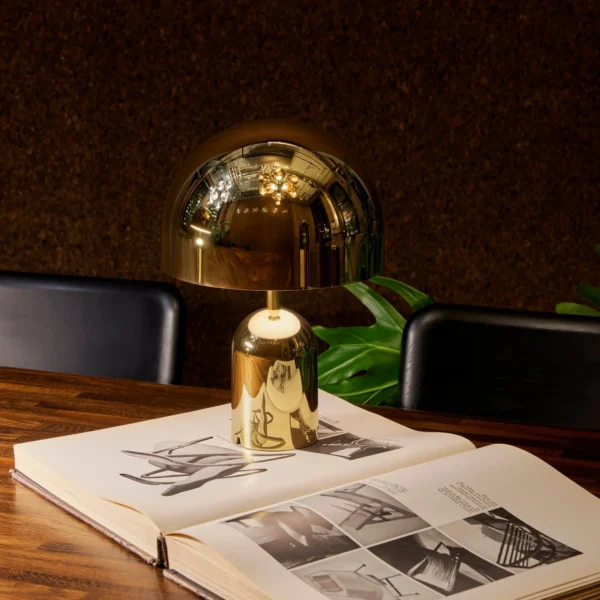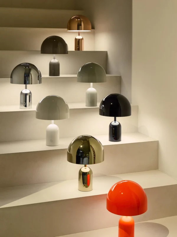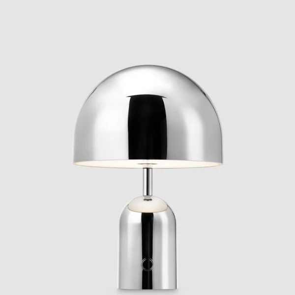 Nešiojamasis šviestuvas BELL yra minimalistinis, blizgus nešiojamas šviestuvas, įkvėptas senovinių automobilių bamperių. Pagamintas iš dengto presuoto plieno, jis atspindi aplinką, o paslėptas difuzorius skleidžia švelnią šviesą. Šis nešiojamas šviestuvas pasižymi 9 valandų baterijos veikimo laiku, universalumu, tinka naudoti tiek patalpose, tiek lauke, energiją taupančiu LED apšvietimu ir parduodamas su pirštinėmis, kad nepaliktų pirštų atspaudų.