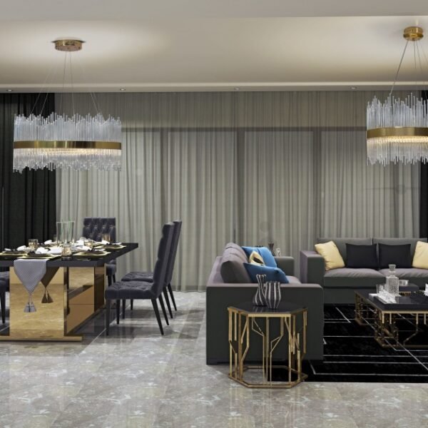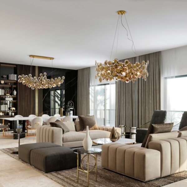 Pakabinamas šviestuvas EVA L-120 aukso spalvos